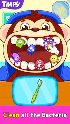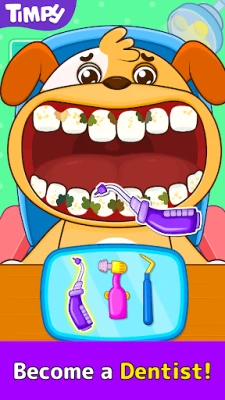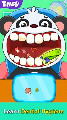 "Timpy Dentist Games for Kids" – tai smagus būdas supažindinti vaikus su dantų priežiūra. Vaikai galės tyrinėti dantų valymą, gydyti kariesą ir žaisti odontologą. Ši žaidimų patirtis padės mokytis apie burnos higieną ir patirti odontologo klinikos jaudulį, ruošiantis tapti mažuoju odontologu.