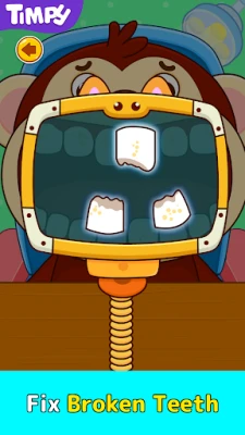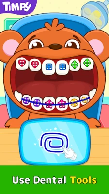 „Timpy Dentist Games" atveria virtualios odontologijos klinikos duris, kur jaunieji gydytojai galės susipažinti su įvairiomis procedūromis ir specializuotais įrankiais. Nuo karieso gydymo ir dantų skausmo malšinimo iki kruopštaus didelių dantų valymo ir dantų siūlo naudojimo – kiekvienas veiksmas yra sukurtas edukuoti. Be to, speciali „gyvūnėlių odontologo" funkcija suteikia papildomos linksmybės, leidžiant vaikams rūpintis ir gyvūnų dantukais. Ši patirtis padeda suprasti, kaip svarbu reguliariai lankytis pas specialistus ir prižiūrėti dantis.