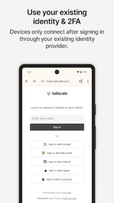 Šios platformos pranašumas – aparatinei įrangai nepriklausomas veikimas, suteikiantis jums visišką laisvę pasirinkti norimus įrenginius, nepaisant tinklo konfigūracijos. „Tailscale" sukuria perdangos tinklą, išnaudojantį jūsų jau esamą infrastruktūrą, todėl ją galite diegti palaipsniui, nereikalaujant naujų tinklo jungiklių ar esamos architektūros pertvarkymo. Su daugiau nei 100 technologijų integracijų ir dešimtimis tapatybės teikėjų, „Tailscale" palaiko platų operacinių sistemų spektrą, įskaitant Apple macOS, iOS, tvOS, Windows, Linux ir Android. Pasiekite sklandų ir saugų prisijungimą iš bet kurios darbo vietos.