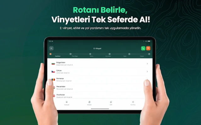 Nuo šiol e-vinječių pirkimas nebebus galvos skausmas. TollTake leidžia akimirksniu įsigyti skaitmenines vinjetes Bulgarijai, Austrijai, Vengrijai, Rumunijai, Slovėnijai ir Čekijai, o jų galiojimo laiką patogiai stebėti tiesiai programėlėje. Taip pat, kad ir kur keliautumėte po Europą, liksite prisijungę prie pasaulio dėka integruoto eSIM palaikymo, leidžiančio lengvai valdyti mobilųjį internetą. O jei kelyje susidurtumėte su netikėtais iššūkiais, TollTake siūlo visą parą veikiančią pagalbos kelyje paslaugą, apimančią vilkimą, degalų tiekimą, padangų keitimą, apgyvendinimą ir net automobilių nuomos sprendimus keliaujantiems tarp Turkijos ir Europos. Jūsų ramybė yra mūsų prioritetas.