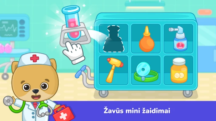 Ar jūsų mažylis trokšta atrasti pasaulį žaisdamas? "Gydytojo žaidimai vaikams" atveria nuostabią mokymosi erdvę, kurioje smalsumas virsta žiniomis. Ši interaktyvi programa siūlo daugiau nei penkiolika žavingų mini žaidimų, kruopščiai sukurtų lavinti esminius įgūdžius. Nuo įtraukiančių dėlionių, tobulinančių erdvinį mąstymą, iki formų ir spalvų sekimo bei rūšiavimo užduočių, kiekviena veikla yra žaismingas žingsnis link geresnio supratimo ir vikrumo.