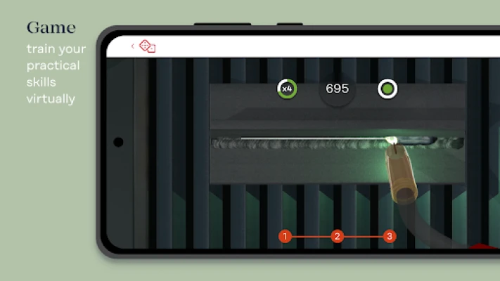 Kai teorija bus įvaldyta, pasinerkite į virtualią praktiką su suvirinimo žaidimu. Čia galėsite išbandyti savo įgūdžius atlikdami įvairias užduotis, pavyzdžiui, suvirinti siūles ant plokštės, kampinius ar sandūrinius suvirinimus. Jūsų virtualus asistentas – vadinamasis "Dvasia" (Ghost) – visada bus šalia, teikdamas spalvotus nurodymus apie optimalų suvirinimo greitį ir poziciją, padėdamas pasiekti tobulo rezultato. Tikslas – surinkti kuo daugiau taškų, kurie taip pat bus registruojami jūsų asmeninėje ir pasaulinėje lyderių lentelėje.